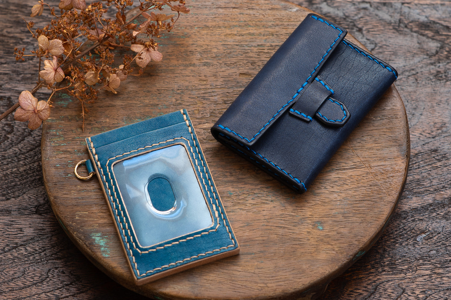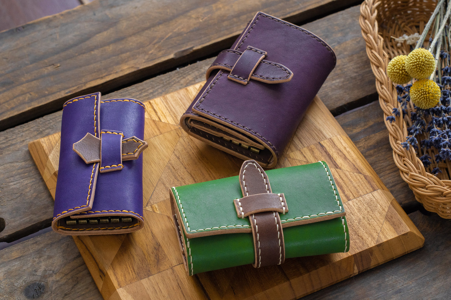 ダークトーンの革色を組み合わせたシックなお財布に仕上がりました