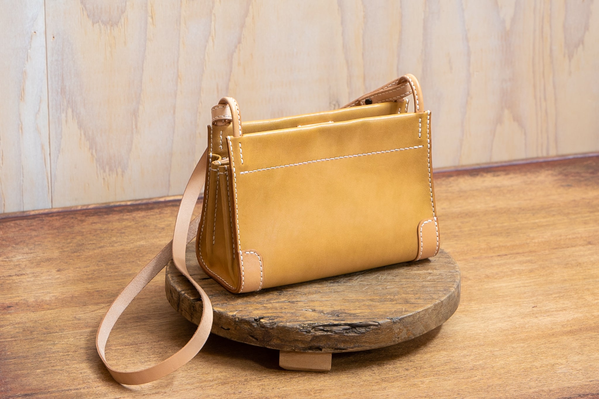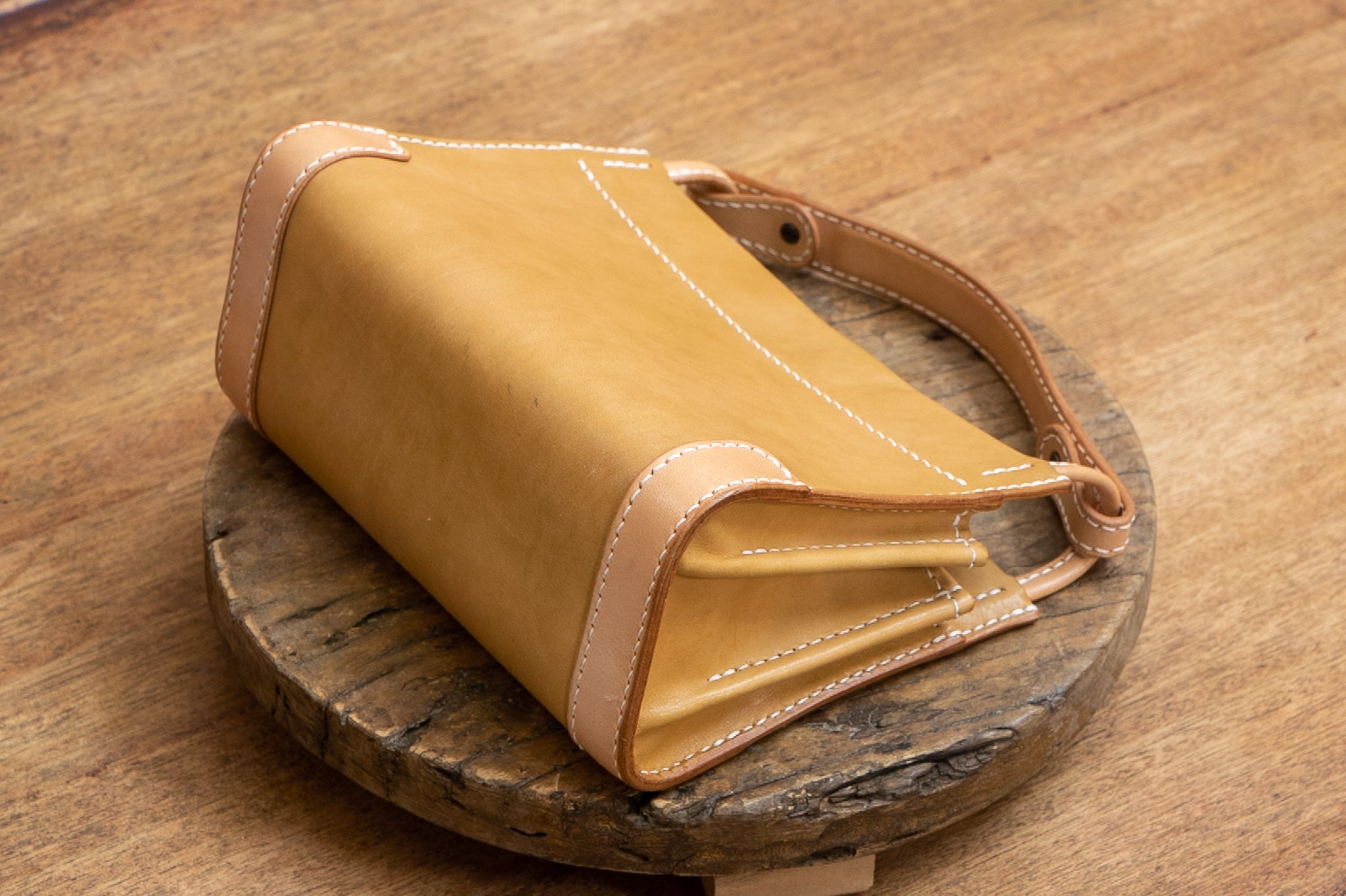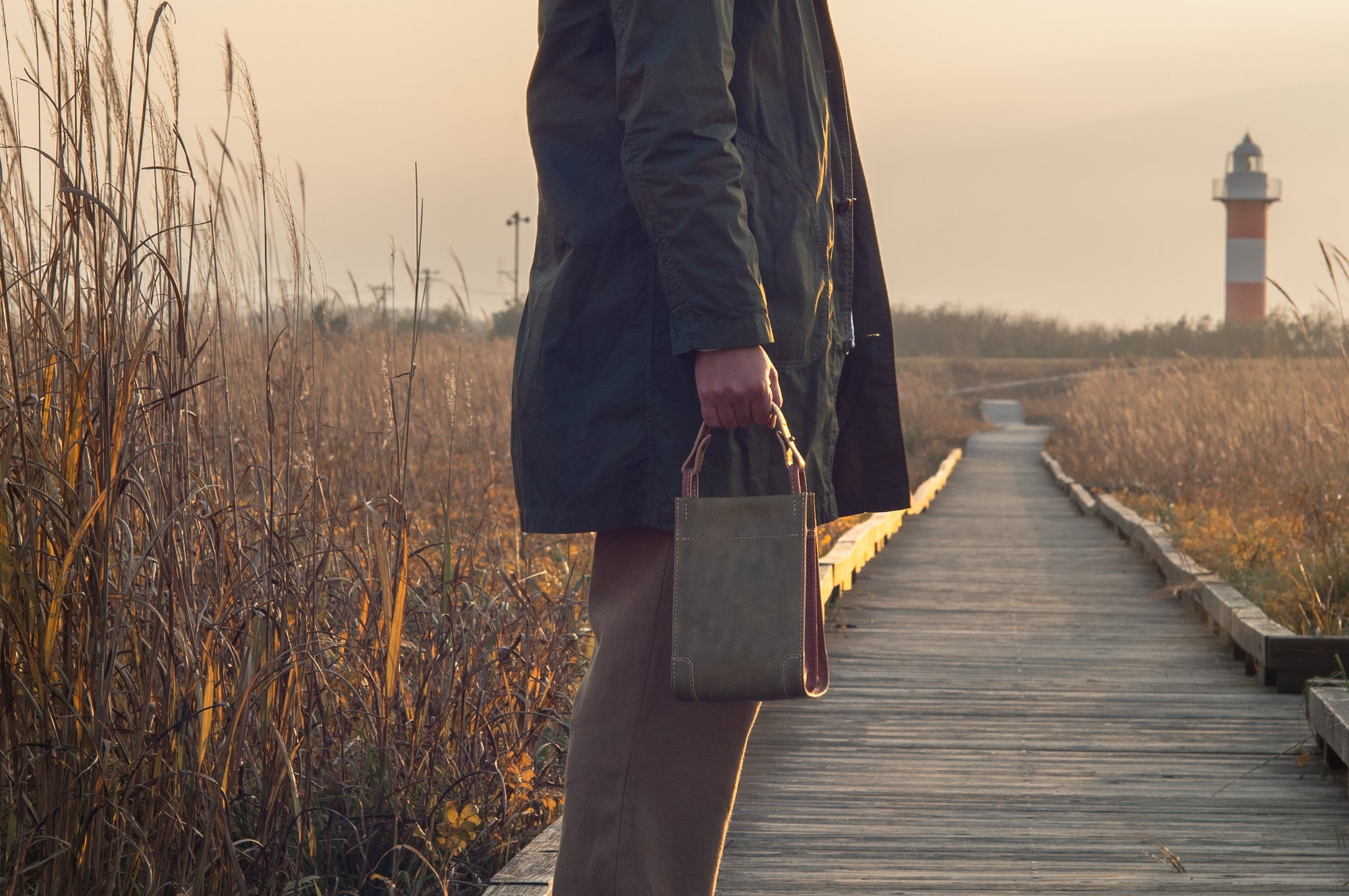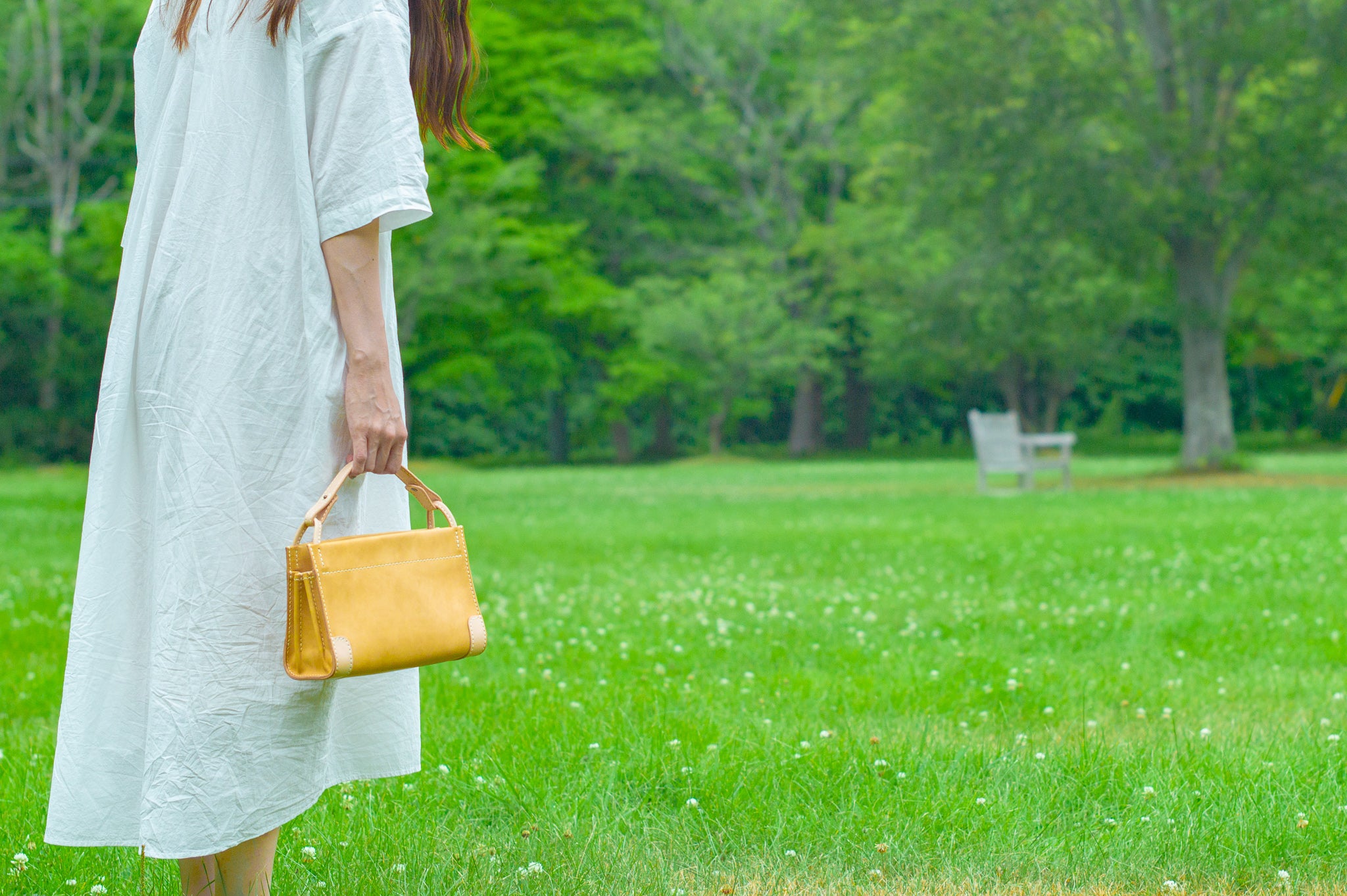 季節の色を映す雫のかたちをイメージした、丸みを帯びたシルエットが特徴の革鞄