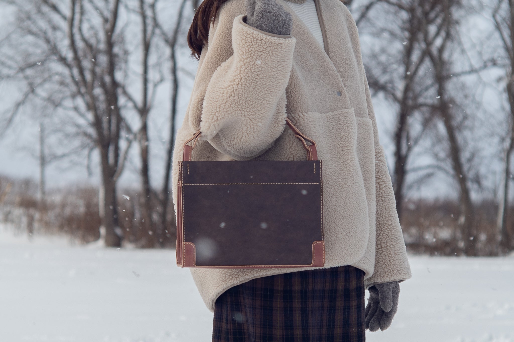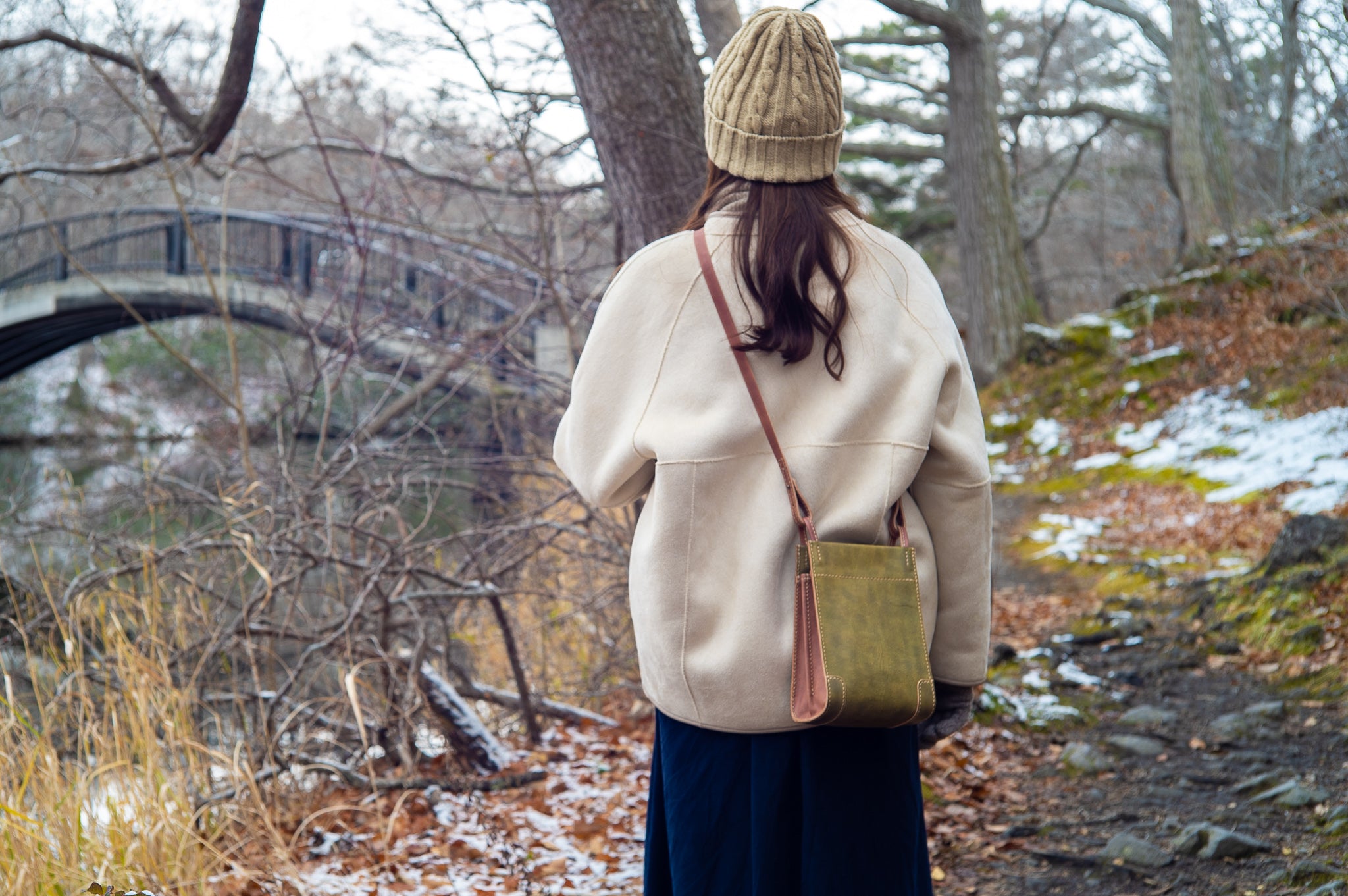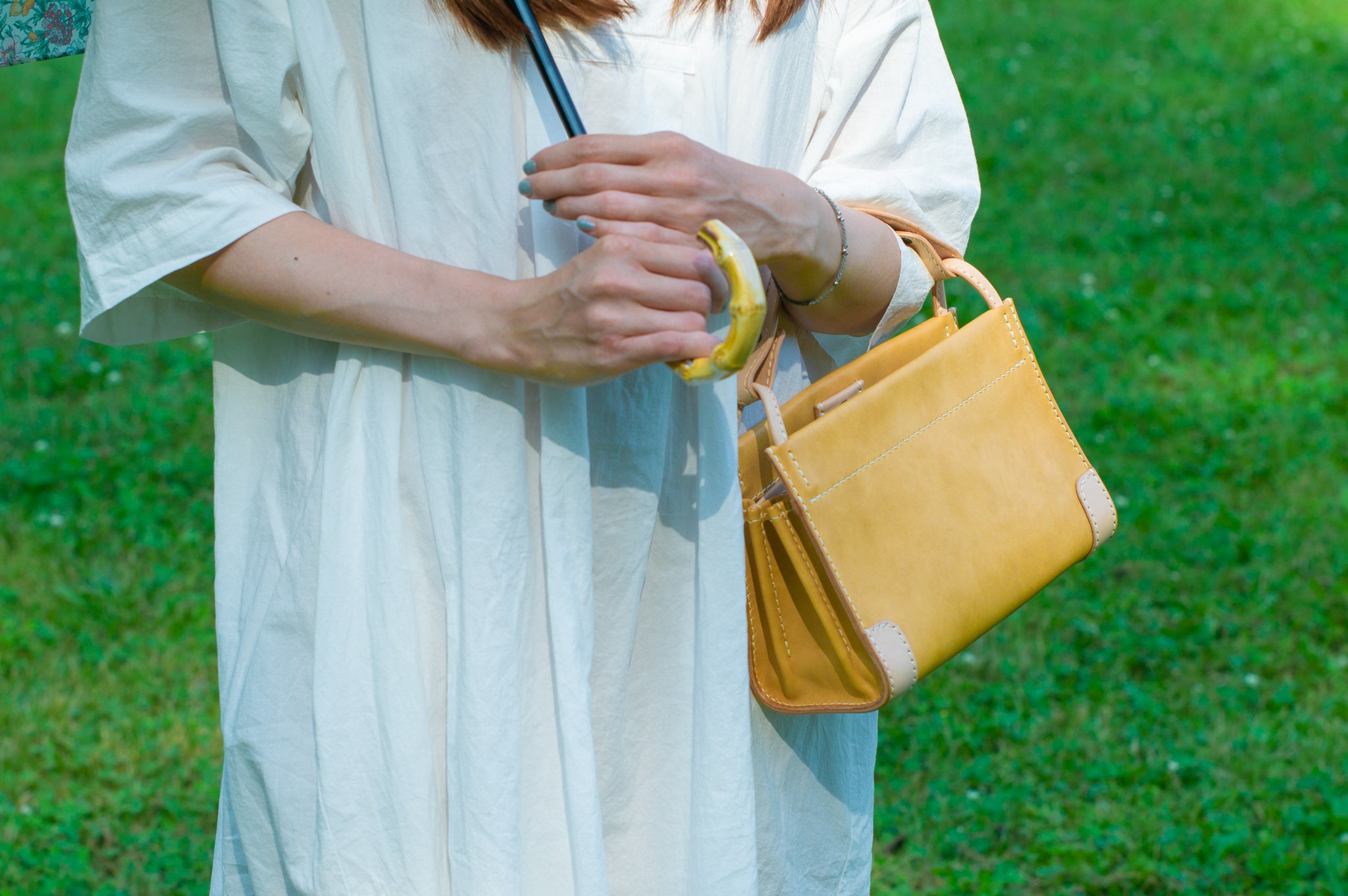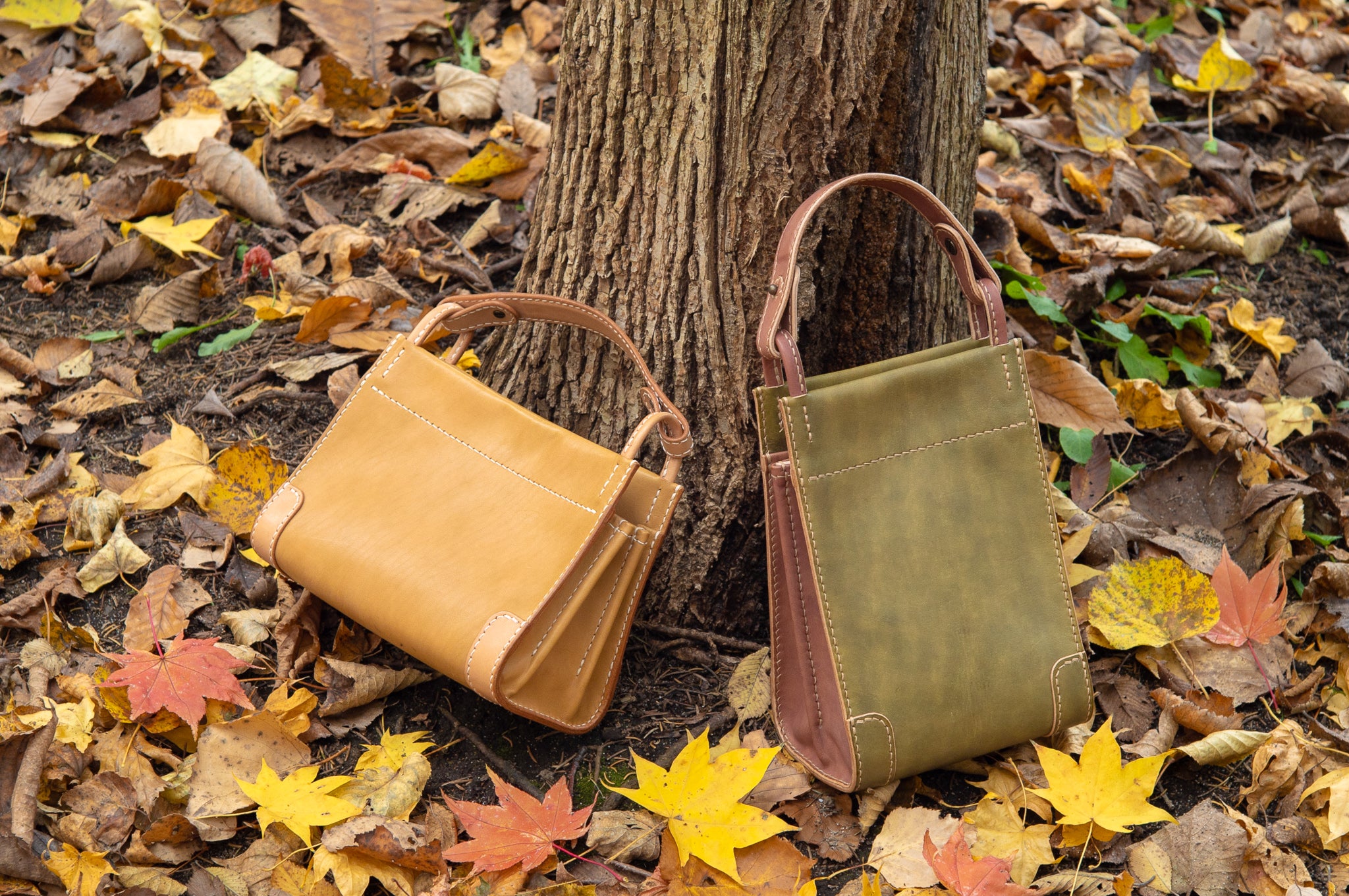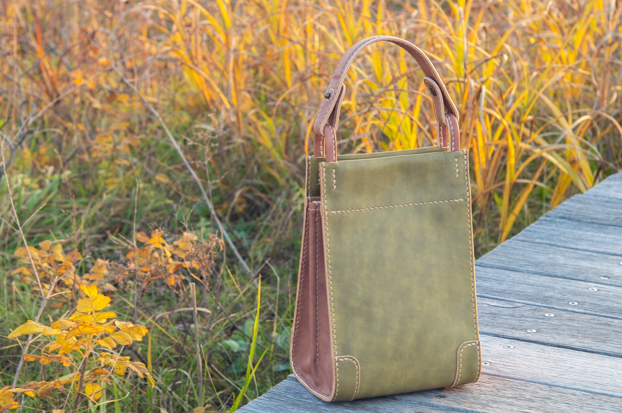 季節の色を映す雫のかたちをイメージした、丸みを帯びたシルエットが特徴の革鞄