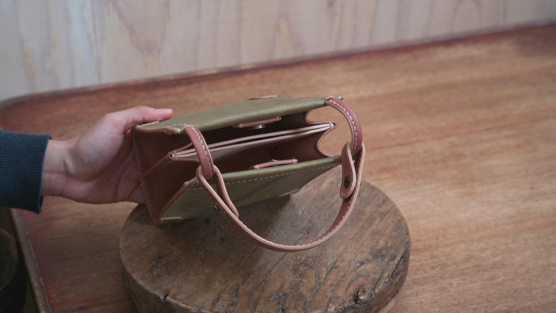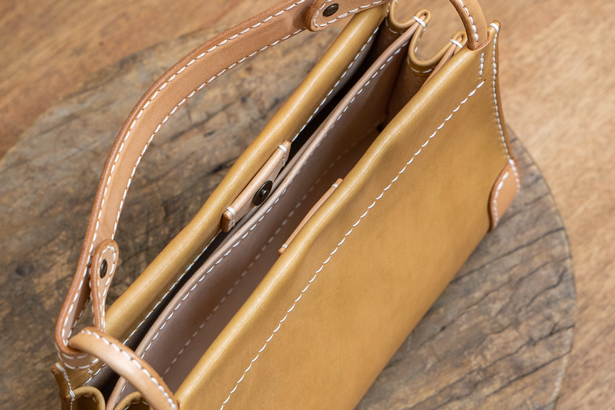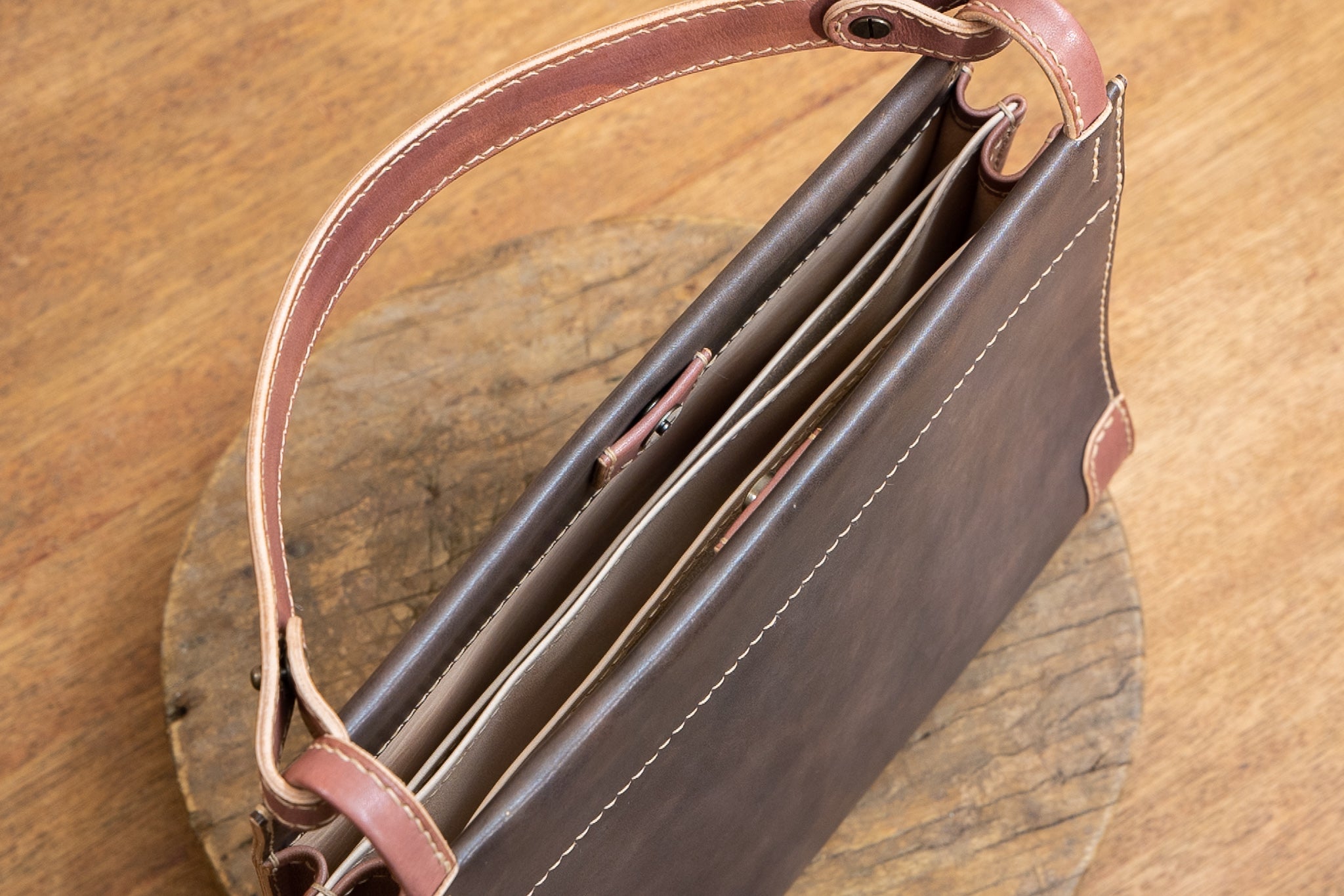 内装にも外装と同じ牛ヌメ革を贅沢に使用しつつも、革の厚みを抑え軽量に設計していますので、軽くしなやかに普段使いに最適の革鞄となっています